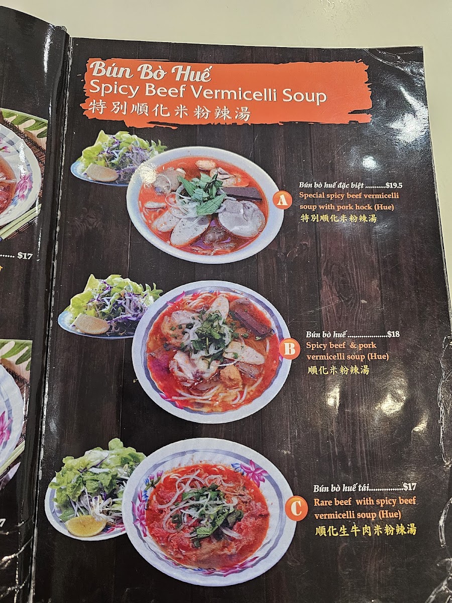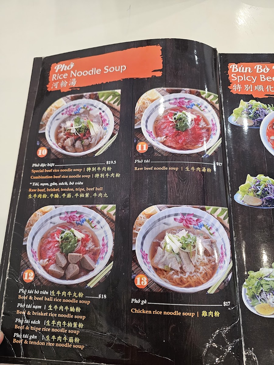 The menu at Pho Song Huong offers a delightful journey through the rich flavors of Vietnamese cuisine. Situated at 1/252 Belmore Rd in Riverwood, this cozy spot has become a favorite for locals craving authentic pho and other traditional dishes. From the moment you open the menu, you’ll be greeted by an impressive selection of dishes, each prepared with the finest ingredients. The star of the menu is, of course, their pho - with its aromatic broth and tender cuts of meat, it’s a bowl that feels like home. Beyond pho, Pho Song Huong also offers an array of other flavorful Vietnamese dishes, including fresh spring rolls, banh xeo, and savory rice plates. Whether you’re in the mood for something light and fresh or a heartwarming meal, there’s something to satisfy every craving. With generous portions and a menu that caters to all tastes, Pho Song Huong ensures each visit is a delicious experience worth savoring.